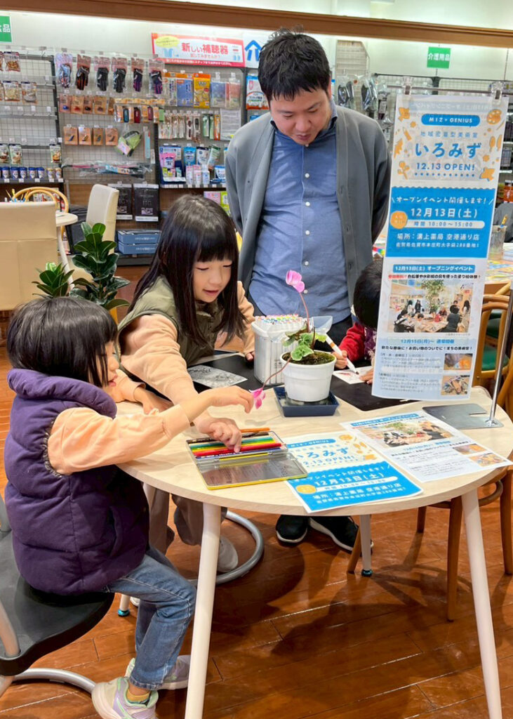 12月13日(土)、溝上薬局 空港通り店にて、株式会社ミズ様との新プロジェクト「MIZ×GENIUS 地域密着型美術室 いろみず」がスタートいたしました!