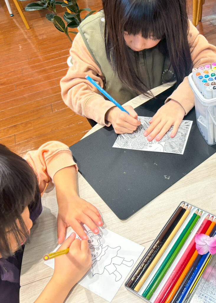 GENIUSのアーティストが薬局内に出張し、自身の制作活動を行いながら、来局された方の創作をやさしくサポート。年齢や経験、障害の有無に関わらず、誰もが表現でき、表現を認め合うことで個性が広がっていく場を目指しています。
